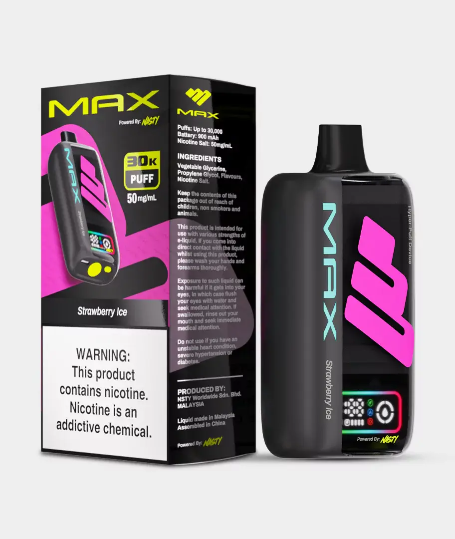 The NASTY MAX 30K is a hyper-puff device that delivers consistent performance to the last drop, powered by the World's Tastiest Flavours. Enjoy longer-lasting flavour and satisfaction, thanks to an improved dual mesh coil configuration that increases liquid consumption efficiency.